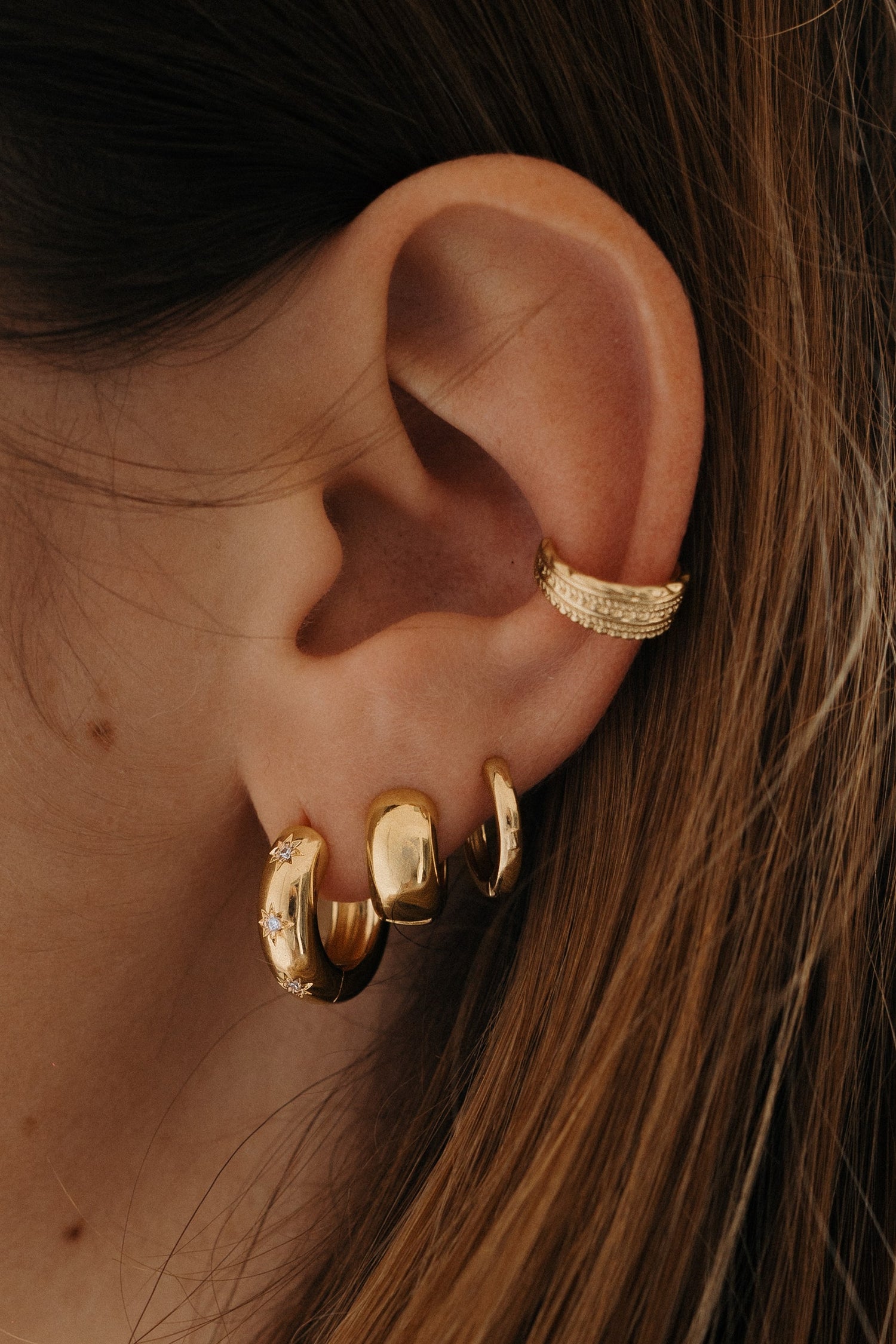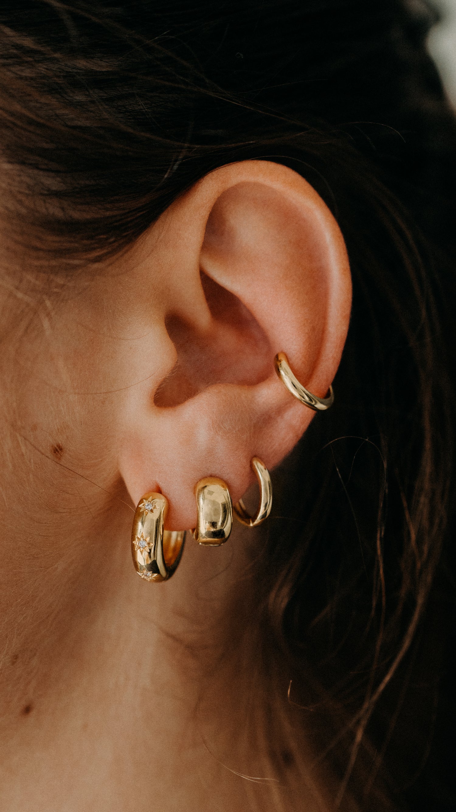 In recent years, mini hoops have seen their popularity increase. In particular thanks to the networks, we have seen many influencers appear wearing several earrings on the same ear. Their compact size makes them perfect for everyday use, and their simple yet elegant design allows them to match any style.