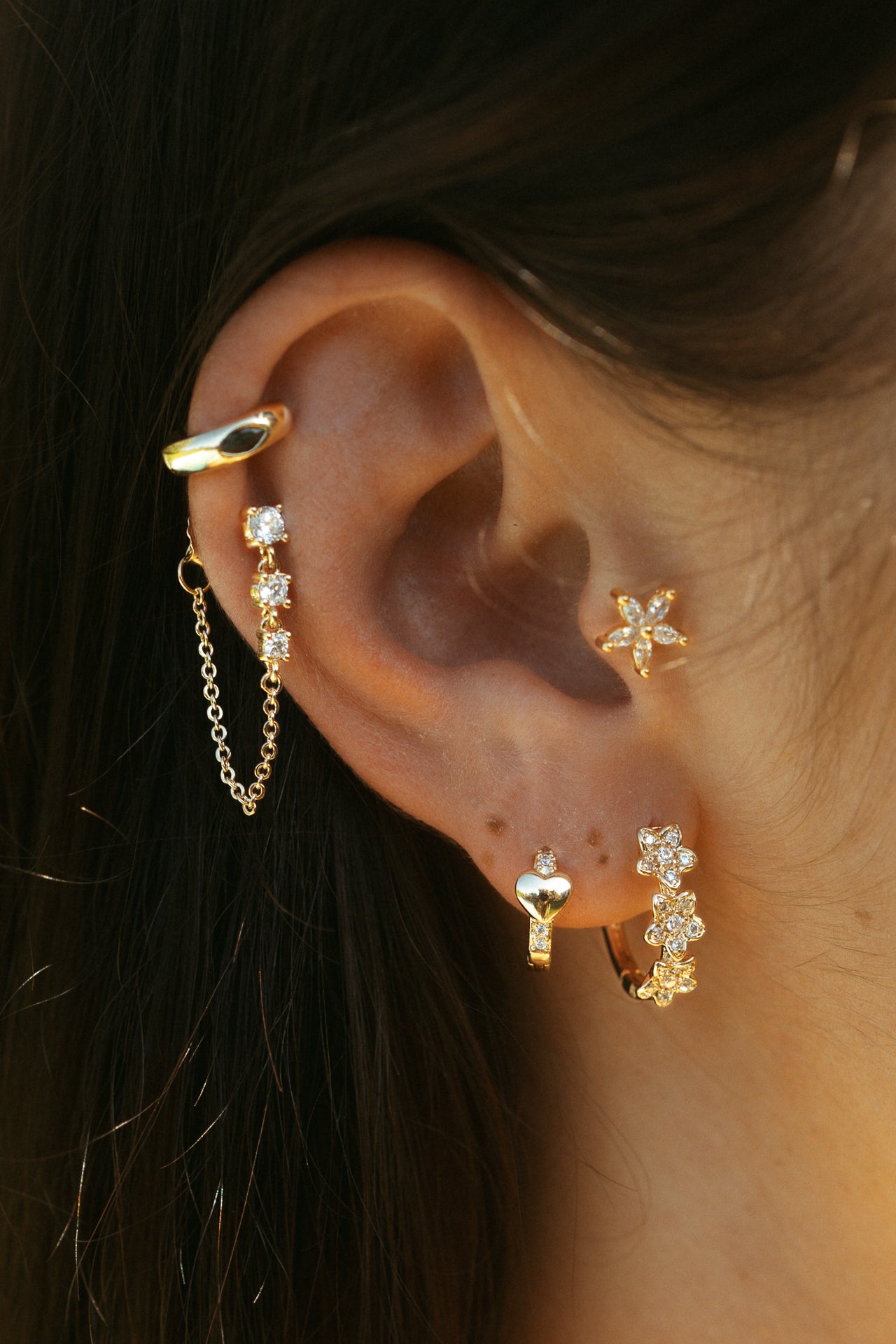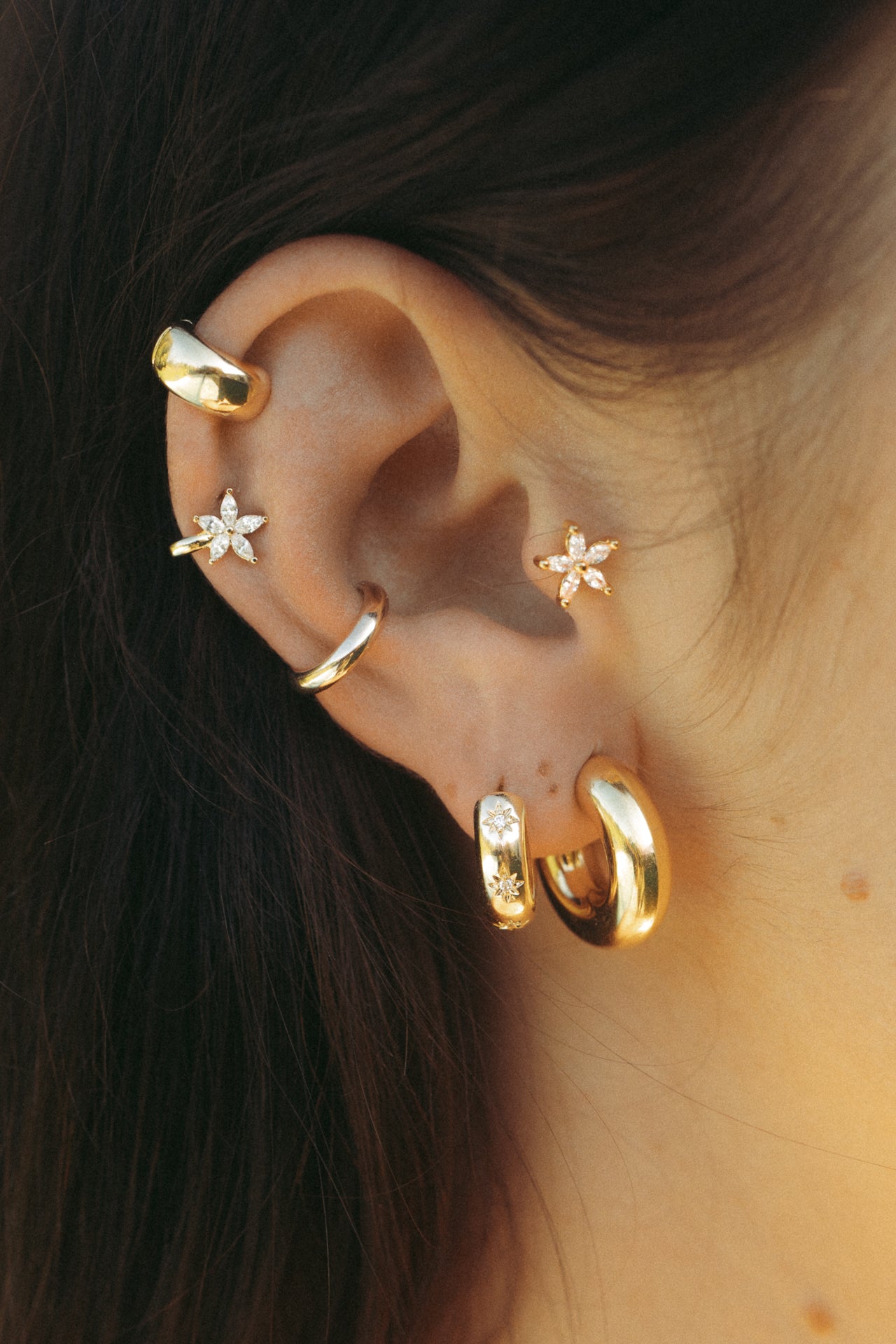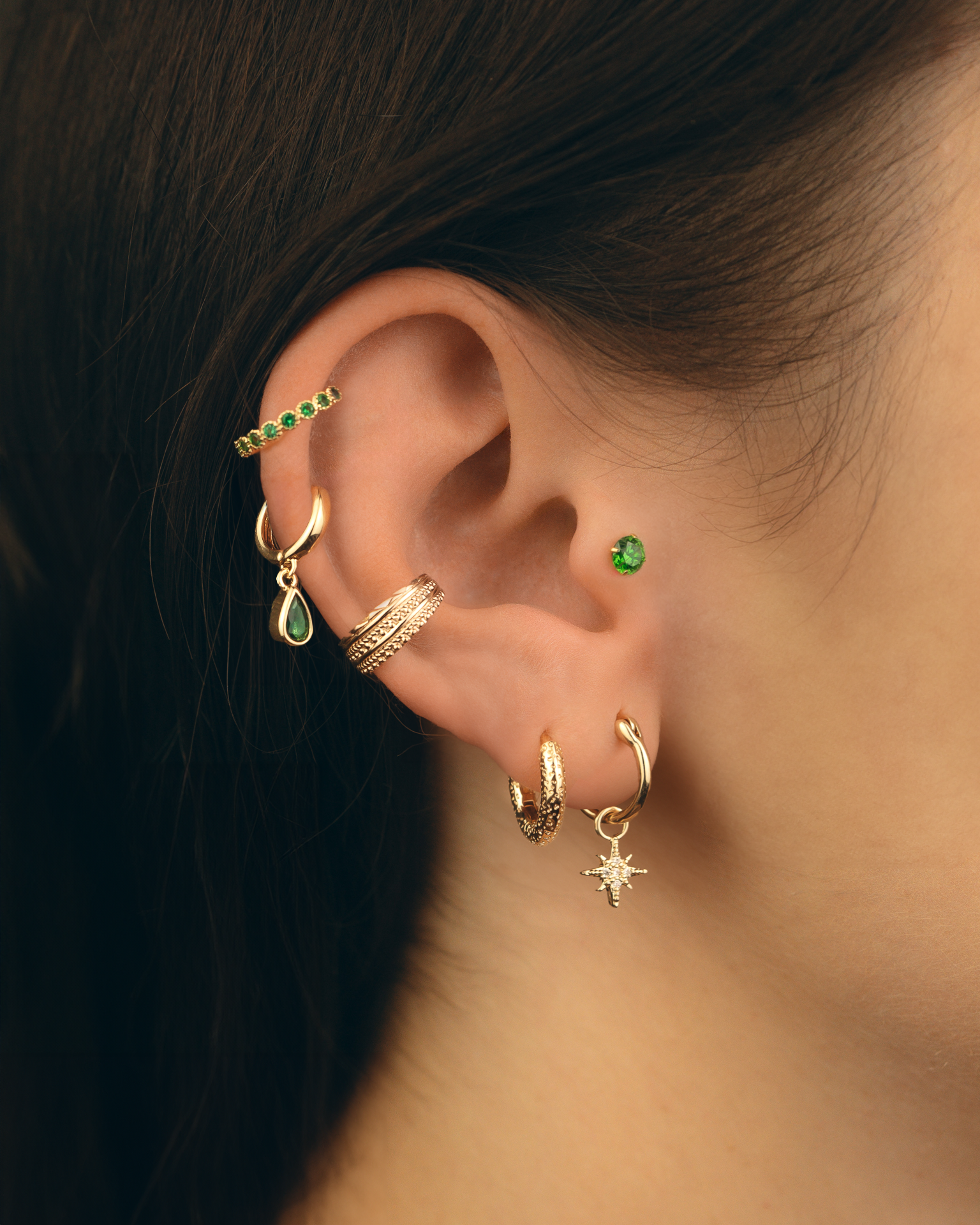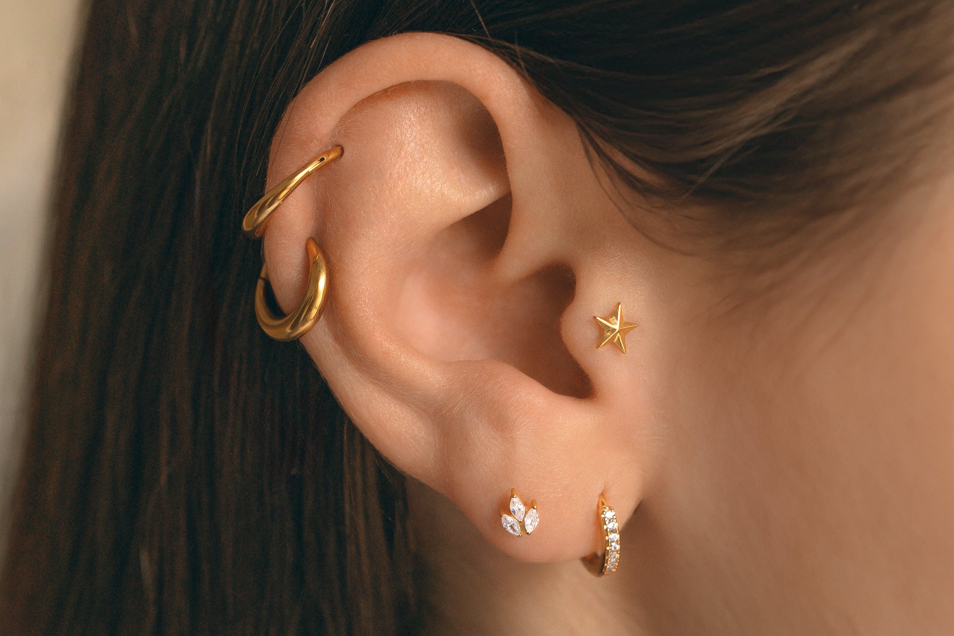 Our mini hoop earrings for the helixEarrings that hang slightly, such as a mini hoop with charm for example, can be a great choice for the helix.